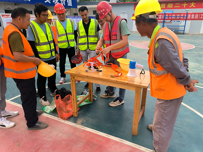為更好地防范夏天雨水量較大易形成局部內(nèi)澇的問題,項(xiàng)目部于5月中旬開展防汛應(yīng)急演練,用時(shí)近2小時(shí),主要圍繞暴雨、急洪水突發(fā)狀況下應(yīng)急預(yù)案響應(yīng)、執(zhí)行、實(shí)施等科目展開,提高了項(xiàng)目管理人員和施工隊(duì)伍在汛情發(fā)生時(shí)的應(yīng)對能力。同時(shí),為進(jìn)一步加強(qiáng)作業(yè)人員的安全技能,熟練使用勞動防護(hù)用品,有效面對突發(fā)情況,項(xiàng)目部于6月8日組織一線作業(yè)人員開展安全技能比賽:如何正確組裝安全帽及安全帶并使用、模擬火災(zāi)場景運(yùn)輸滅火器材等,真正做到“人人講安全、個(gè)個(gè)會應(yīng)急”。
