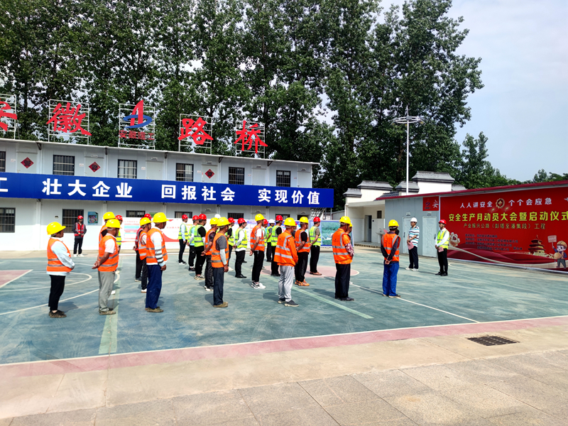 項(xiàng)目部堅(jiān)持一手抓安全、一手抓生產(chǎn),以“兩不耽誤、兩相促進(jìn)”為宗旨,加大宣傳力度,力爭實(shí)現(xiàn)“1+1>2”的效果。6月1日,項(xiàng)目部聯(lián)合霍邱縣交通局舉行了安全宣誓暨全國安全月活動啟動儀式,參觀安全月主題圖片展、學(xué)習(xí)安全生產(chǎn)相關(guān)知識特別是安全生產(chǎn)“八安八險(xiǎn)”等內(nèi)容,監(jiān)理單位、項(xiàng)目管理人員、勞務(wù)隊(duì)伍代表等30余人還進(jìn)行了安全生產(chǎn)集體宣誓。5月,項(xiàng)目部組織召開勞動競賽啟動儀式,結(jié)合項(xiàng)目進(jìn)度制定了競賽活動方案并及時(shí)宣貫、展開討論。同時(shí),在項(xiàng)目部及施工現(xiàn)場醒目位置懸掛橫幅23條,在公告欄張貼各班組施工進(jìn)度完成情況并動態(tài)更新,營造勞動競賽濃厚氛圍。設(shè)置安全圍擋及安全警示標(biāo)牌,保證進(jìn)度的同時(shí)落實(shí)安全制度。