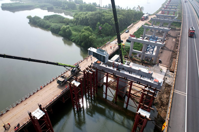 名媒聚焦|蚌埠日報(bào):G36寧洛高速蚌明改擴(kuò)建01標(biāo)項(xiàng)目——首片鋼箱梁順利架設(shè)