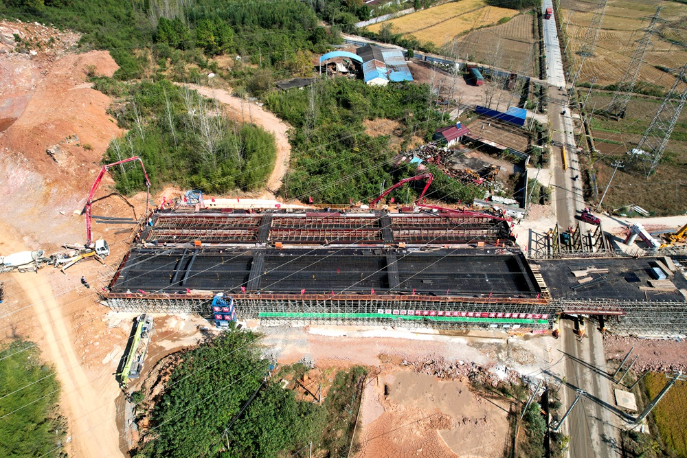 工程建設(shè)制勝在關(guān)鍵點(diǎn),項(xiàng)目部始終堅(jiān)持把關(guān)鍵節(jié)點(diǎn)工程攻堅(jiān)作為“頭號(hào)工程”。水東四號(hào)橋位于象山腳下,橫跨鄉(xiāng)道施工,施工組織難度大,安全風(fēng)險(xiǎn)高。項(xiàng)目積極組織工作專班,通過(guò)優(yōu)化方案、細(xì)化分工、倒排工期和現(xiàn)場(chǎng)監(jiān)督等措施,并積極對(duì)接當(dāng)?shù)卣陀嘘P(guān)電力部門,多番實(shí)地考察、測(cè)量,保障施工過(guò)程的有序性、高效性和安全性。2023年11月8日上午,水東四號(hào)橋首件現(xiàn)澆梁順利澆筑完成,標(biāo)志著項(xiàng)目關(guān)鍵施工節(jié)點(diǎn)取得突破性進(jìn)展。