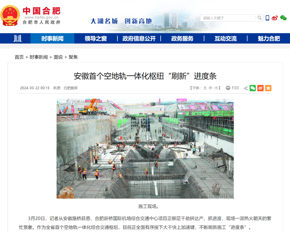 【名媒聚焦】多家主流媒體持續(xù)關(guān)注合肥新橋國際機(jī)場綜合交通中心項(xiàng)目建設(shè)