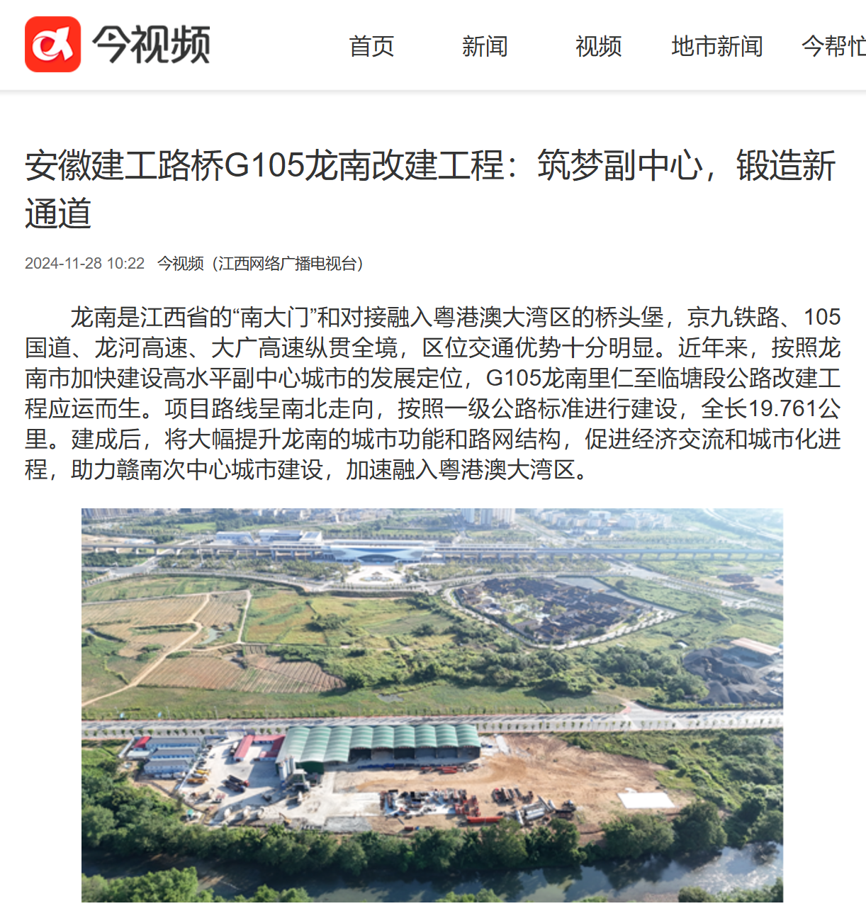 【名媒聚焦】江西網(wǎng)絡(luò)廣播電視臺:安徽建工路橋G105龍南改建工程:筑夢副中心,鍛造新通道