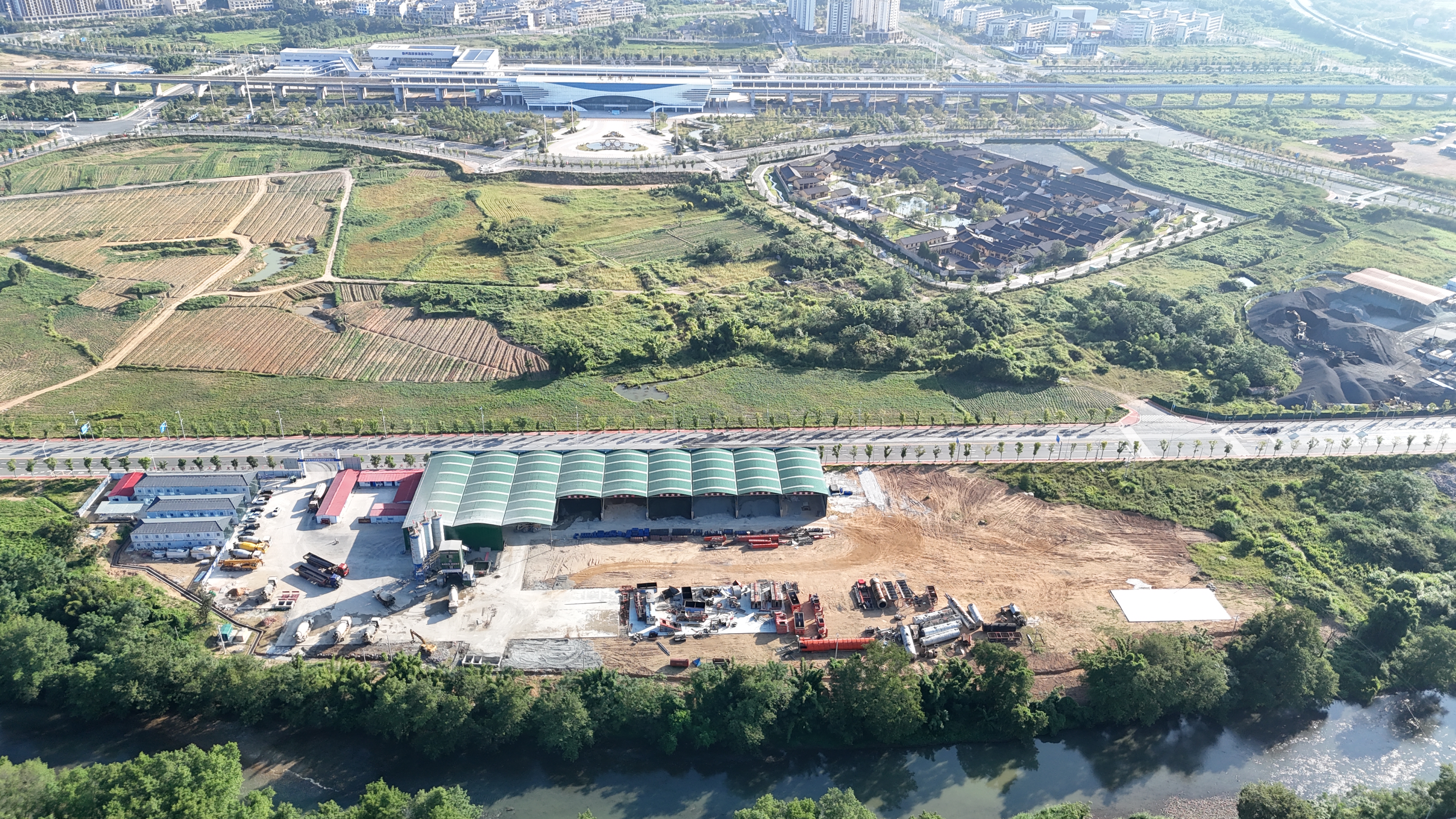 項目地處素有“圍屋之都”和“生態(tài)王國”美譽的龍南,沿線經(jīng)過多個景區(qū)、村莊和水果基地,對環(huán)境保護有著極高要求。為貫徹綠色施工理念,項目部成立了安全環(huán)保管理小組,建立健全了環(huán)保管理體系。施工現(xiàn)場配備了污水處理和揚塵控制設(shè)施,嚴(yán)格執(zhí)行土方運輸覆蓋、道路灑水降塵、噪音控制等環(huán)保措施,確保施工期間對周邊環(huán)境影響降至最低。同時,項目部注重耕地保護和廢棄物管理,通過推行廢水、廢氣、固體廢棄物的分類回收和無害化處理,減少對生態(tài)環(huán)境的破壞,力求打造生態(tài)友好型高品質(zhì)工程,實現(xiàn)工程建設(shè)與自然環(huán)境的和諧共生。
