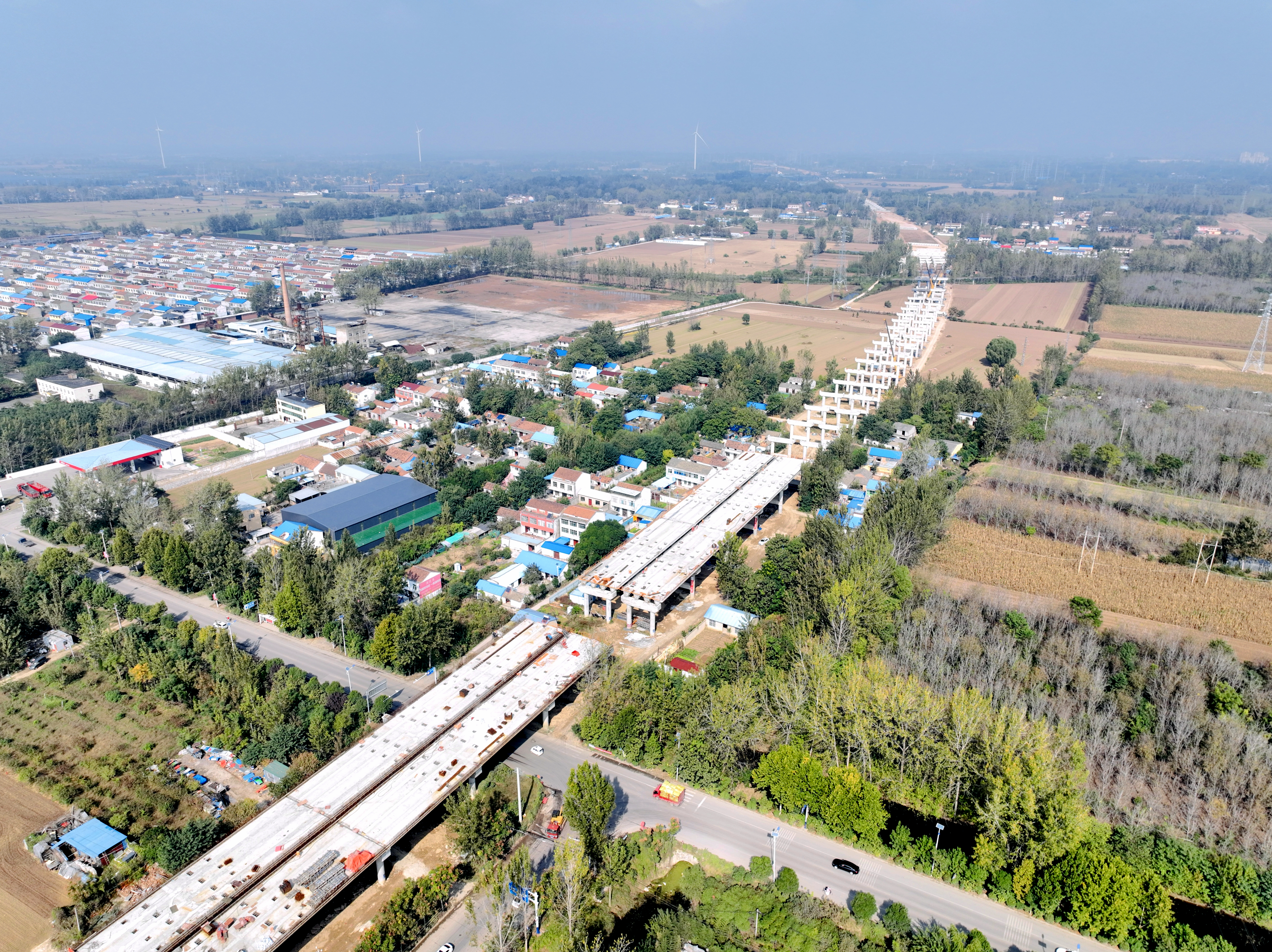 施工橋梁橫跨王引河、沱河等多條河流,穿越303省道和鹽洛高速,這種涉路涉河施工安全風險高、地質條件復雜。為確保橋梁下部結構施工順利完成,項目部制定了詳細施工方案和安全保障措施,采取多點同步施工方式,對施工人員進行網格化管理,嚴格落實“首件制”“三檢制”等,保障工程質量安全。