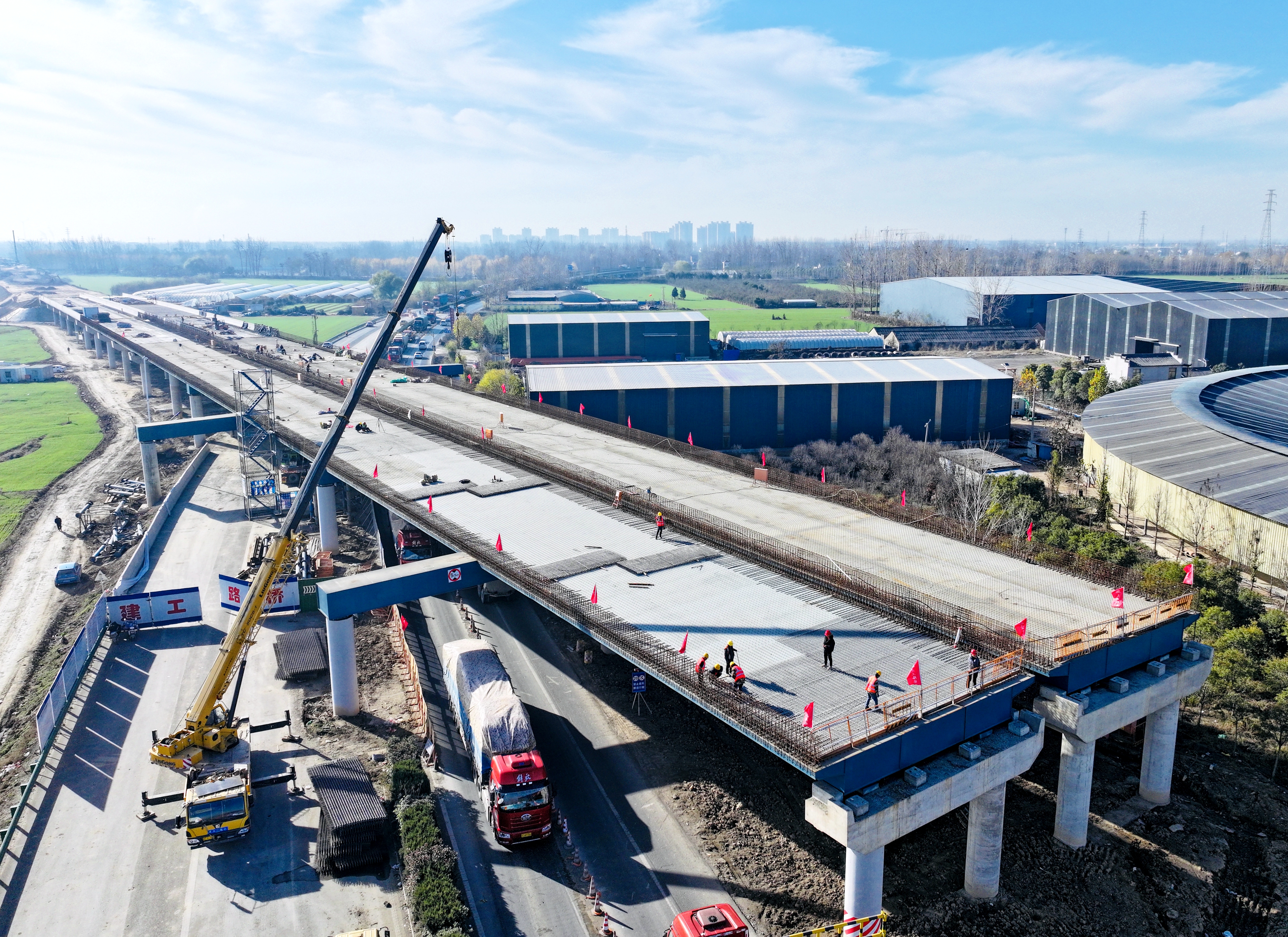12月20日,徐淮阜高速淮北段項(xiàng)目施工現(xiàn)場(chǎng)一片熱火朝天的景象。