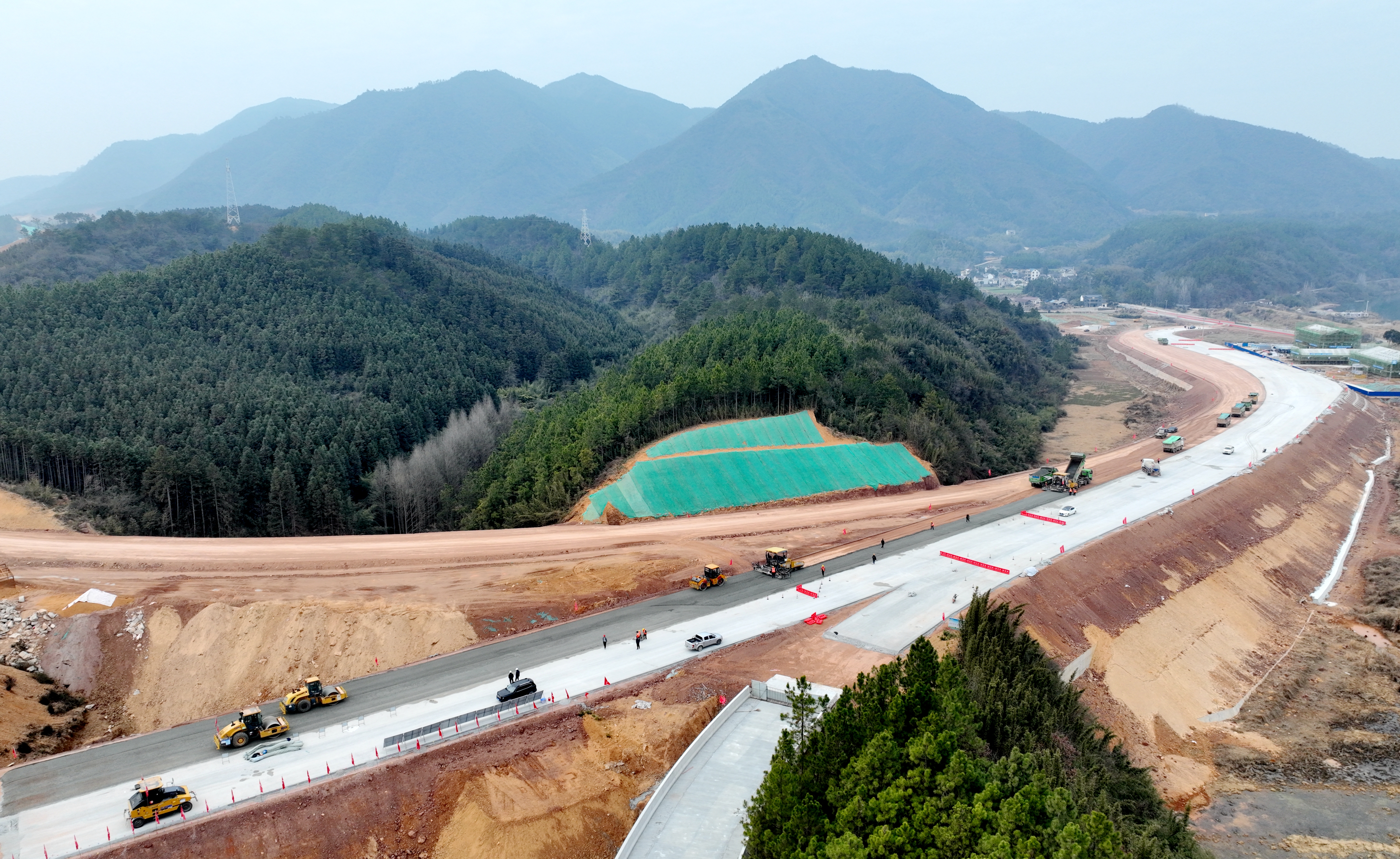 2月24日上午,記者站在已初具雛形的路基上眺望,4臺(tái)壓路機(jī)組成的方陣正向前推進(jìn)。身穿橙色反光背心的工人們手持鐵鍬緊隨攤鋪機(jī),像給大地編織鎧甲般細(xì)致修補(bǔ)著每一寸接縫。每一道工序都嚴(yán)格按照標(biāo)準(zhǔn)進(jìn)行,在確保施工質(zhì)量的同時(shí),也為后續(xù)工作的順利開展奠定了堅(jiān)實(shí)基礎(chǔ)。