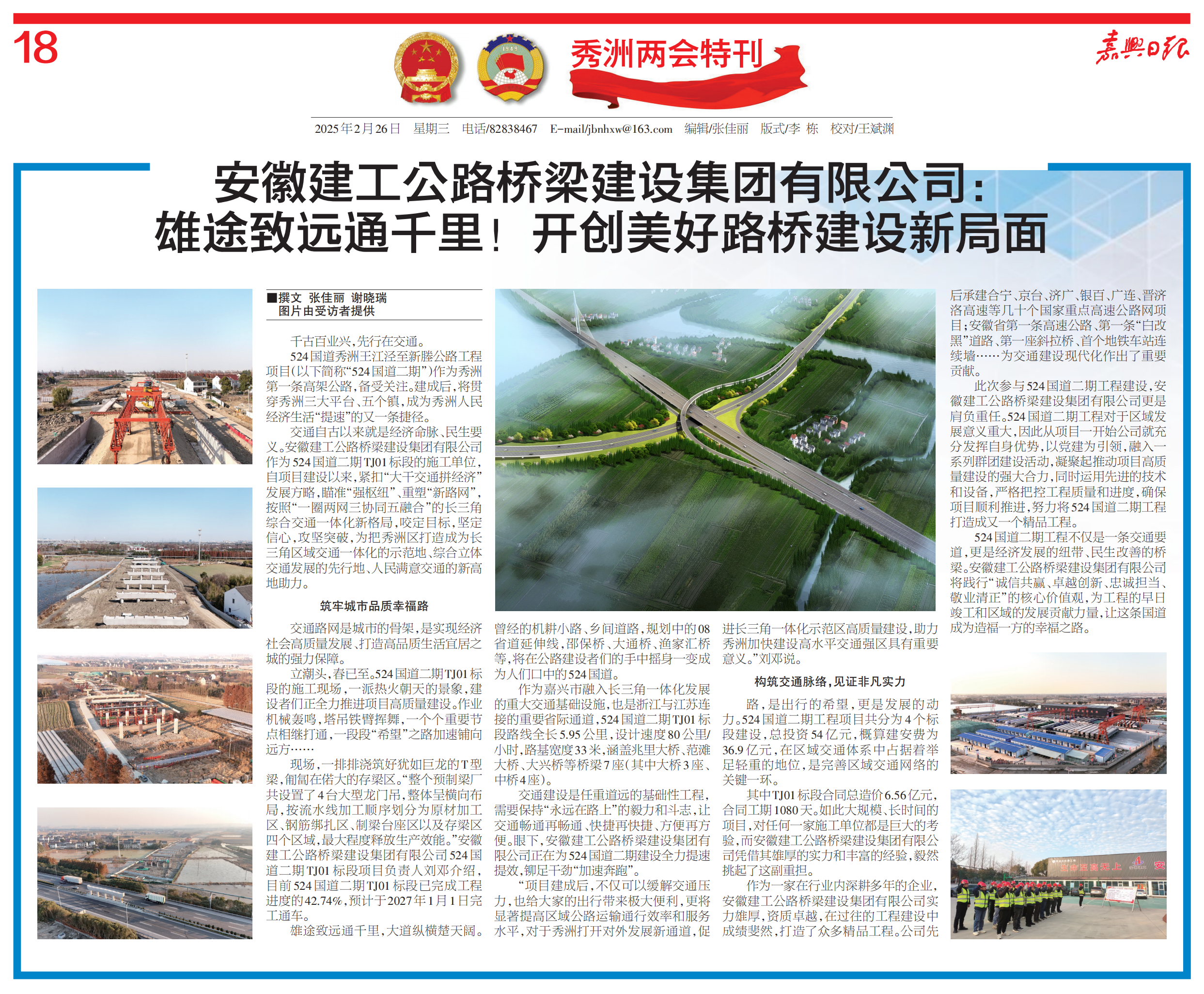 【名媒聚焦】嘉興日報:安徽建工公路橋梁建設(shè)集團有限公司——雄途致遠通大道!開創(chuàng)美好建工路橋建設(shè)新局面