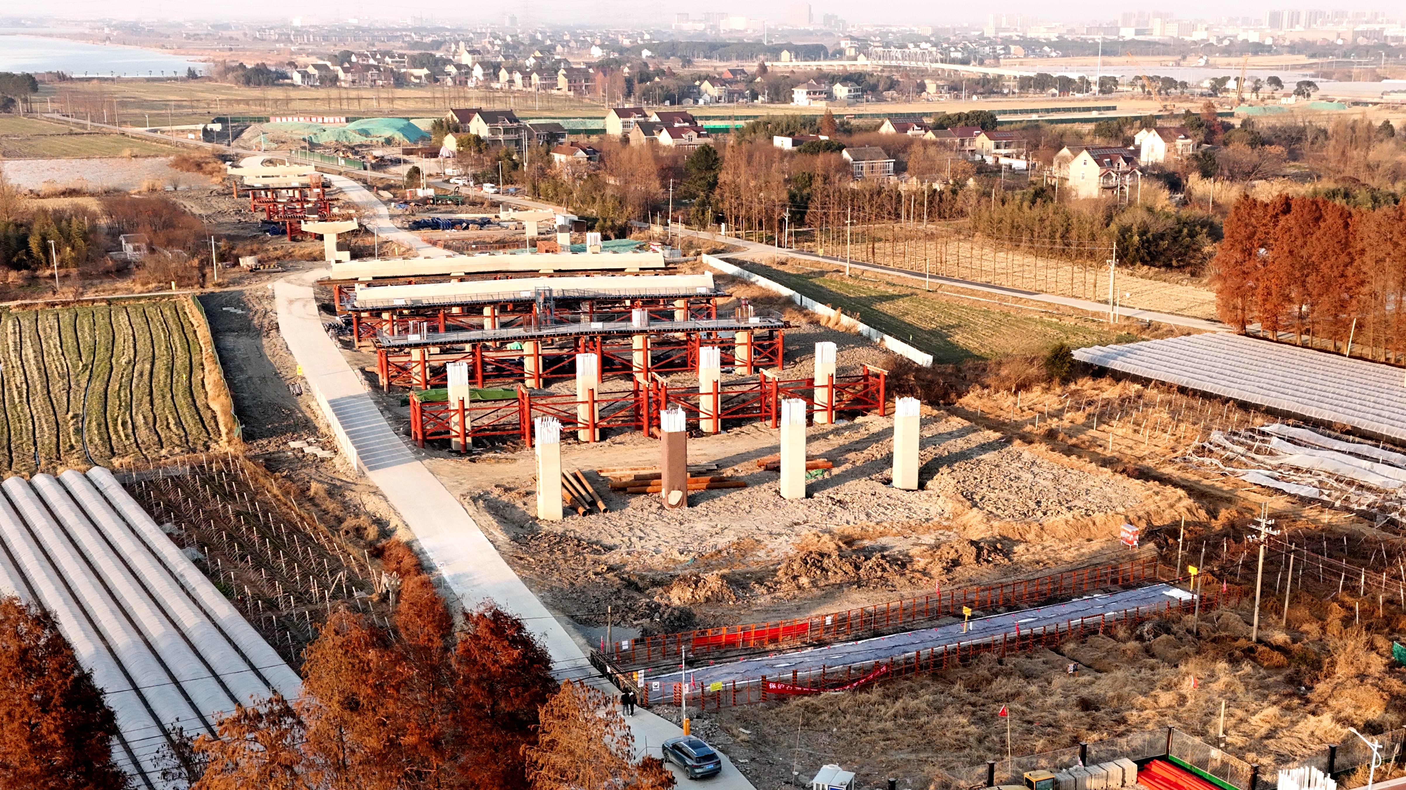 作為嘉興市融入長三角一體化發(fā)展重大交通基礎(chǔ)設(shè)施,也是浙江與江蘇連接的重要省際通道,524國道二期TJ01標(biāo)段路線全長5.95公里,設(shè)計速度80公里/小時,路基寬度33米,涵蓋兆里大橋、范灘大橋、大興橋等橋梁7座(其中大橋3座,中橋4座)。