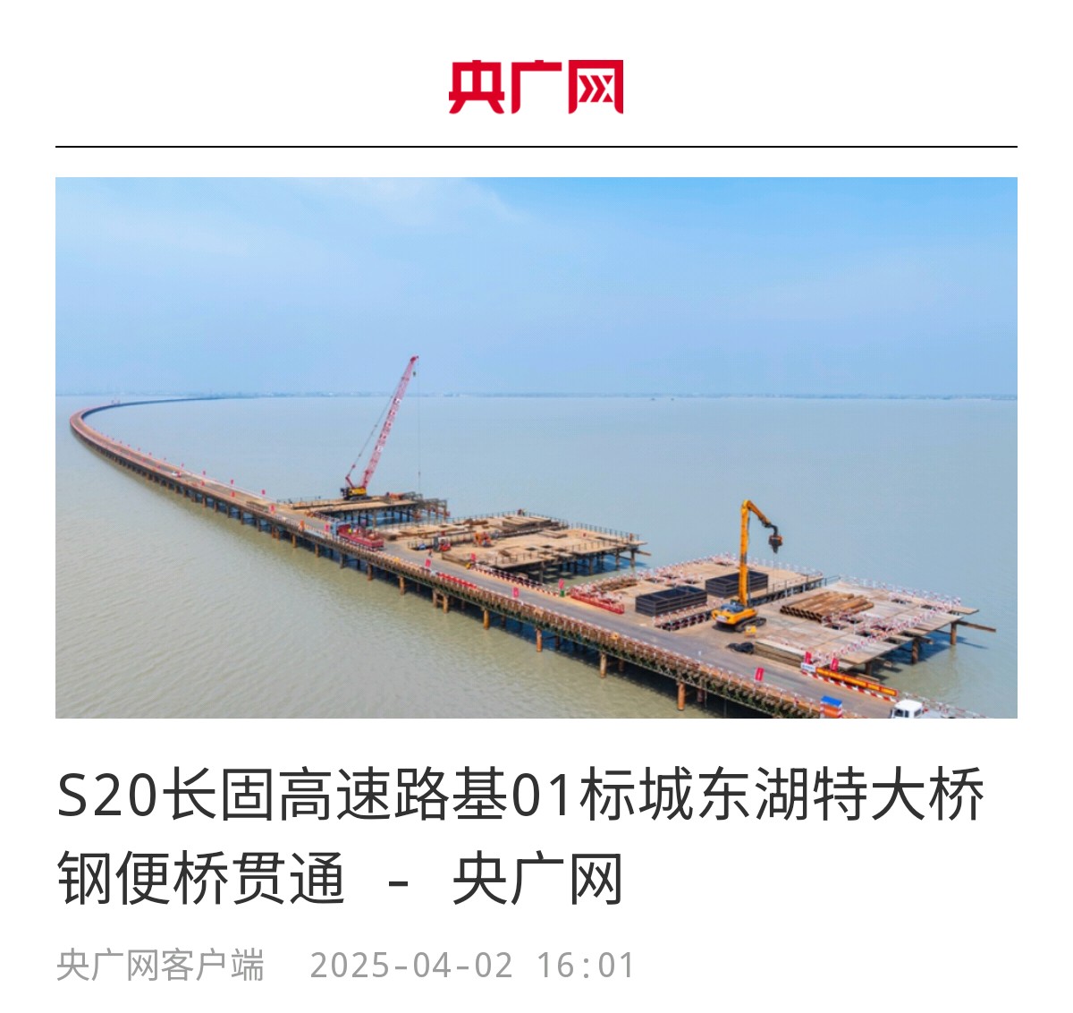 【央媒聚焦】央廣網(wǎng)等主流媒體關注報道S20長固高速路基01標城東湖特大橋鋼便橋貫通
