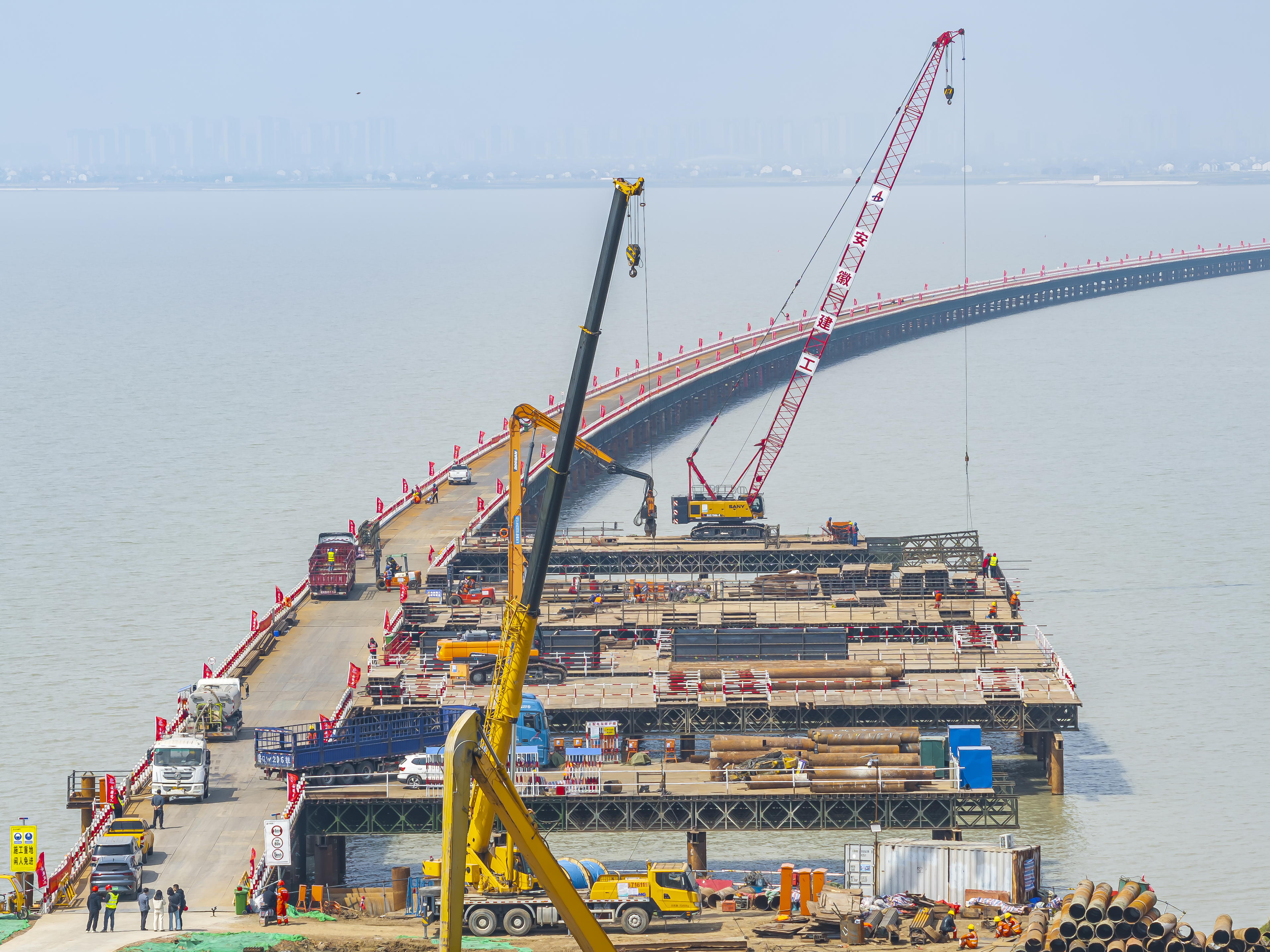 此次貫通的鋼便橋全長3.5公里,作為主橋施工的“生命線”,承擔著機械通行、材料運輸?shù)汝P鍵任務。為確保鋼便橋順利貫通,項目團隊東西兩岸雙向推進、同步攻堅,科學調配人員、物資等要素,歷時83天順利實現(xiàn)全幅貫通,較原計劃提前20天完成任務。