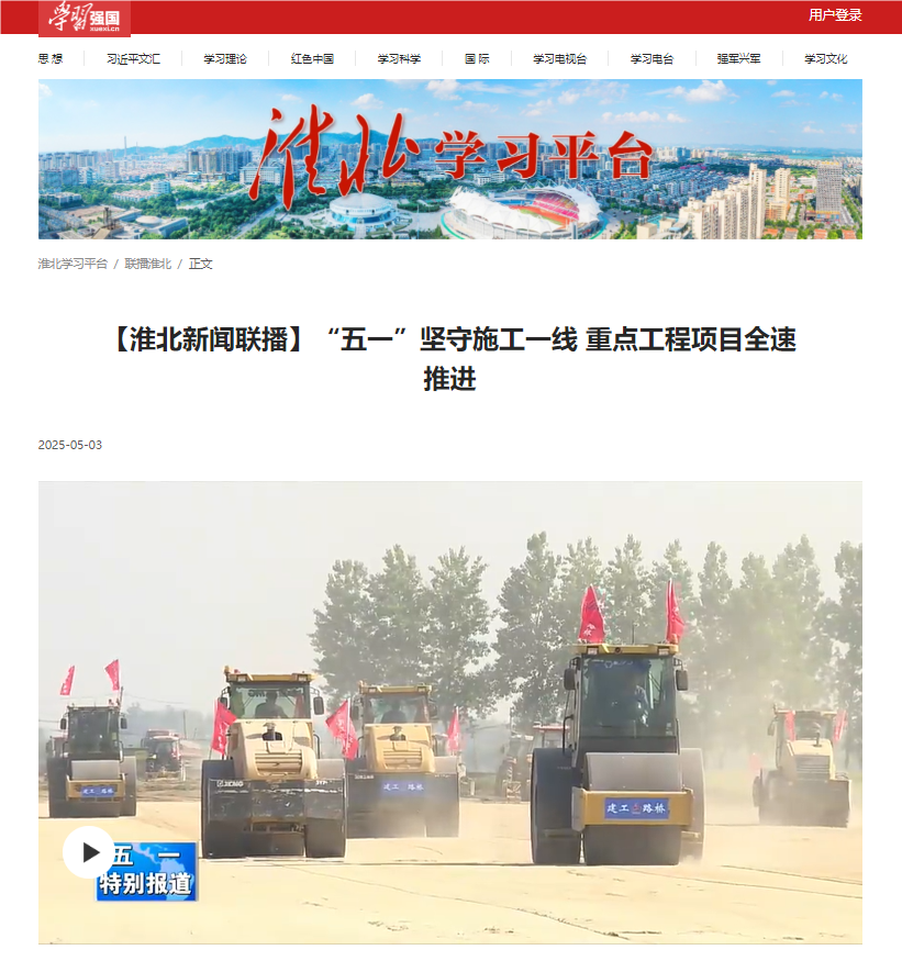 “五一”期間,公司承建的合肥新橋國際機場綜合交通中心項目、淮桐高速合肥段路基2標、S235濉唐路三期項目、徐淮阜高速淮北段項目、S20長固高速路基01標等一批項目“火力全開”,奮戰(zhàn)二季度,在江淮大地奏響項目建設“協(xié)奏曲”,受到央廣網(wǎng)、學習強國、安徽新聞聯(lián)播、大皖新聞等多家主流媒體的關注報道。