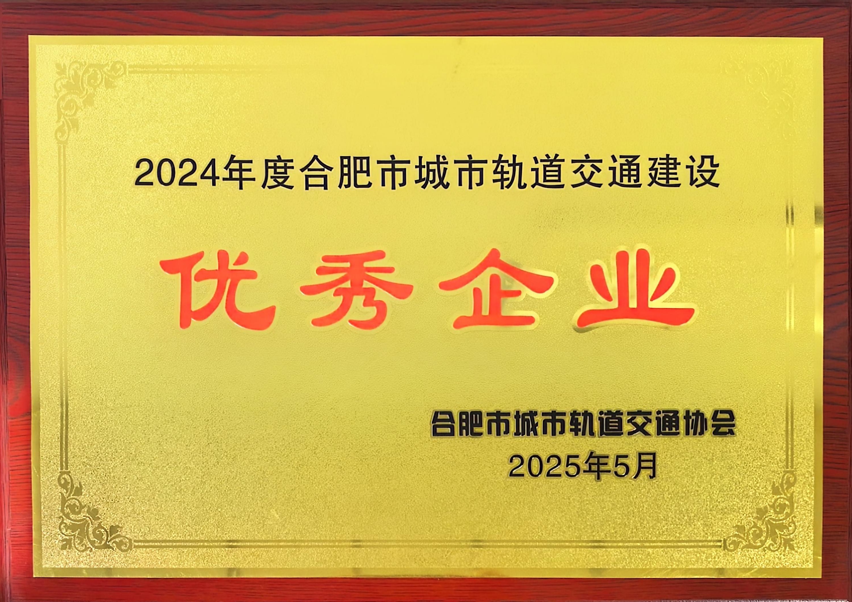 公司榮獲2024年度合肥市城市軌道交通建設(shè)優(yōu)秀企業(yè)
