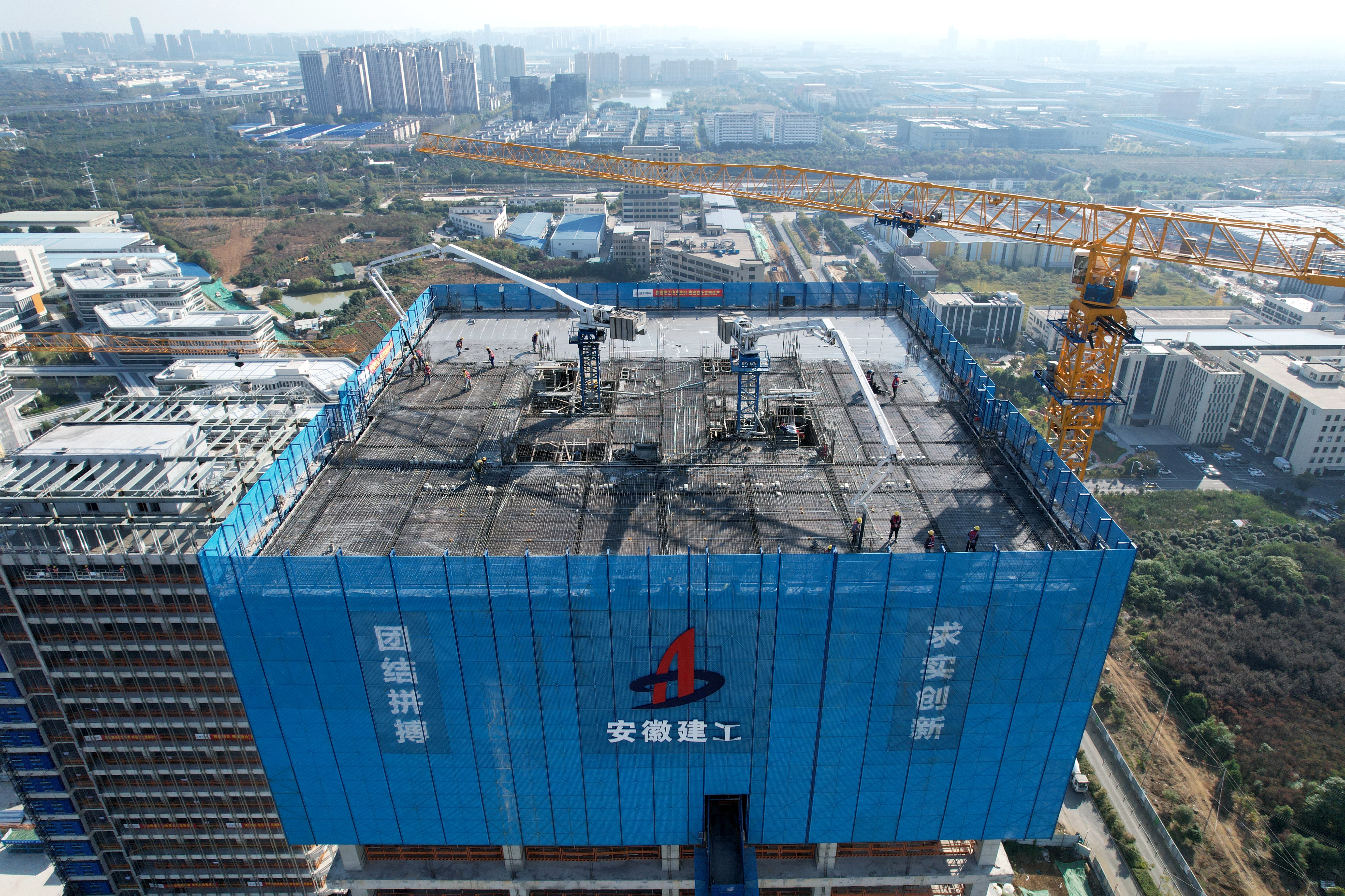 黨建與生產(chǎn)的同頻共振,不僅破解了建設(shè)難題,更催生了“1+1>2”的倍增效應(yīng)。項(xiàng)目黨支部緊扣項(xiàng)目不同建設(shè)周期的特點(diǎn),精心組織開(kāi)展黨員包保督導(dǎo)、任務(wù)攻關(guān)等特色活動(dòng)十余次,為項(xiàng)目順利推進(jìn)筑牢堅(jiān)實(shí)保障。尤其在二期主體結(jié)構(gòu)攻堅(jiān)階段,黨支部聚焦“急難險(xiǎn)重”任務(wù),火速組建項(xiàng)目黨員突擊隊(duì)、設(shè)立7個(gè)黨員先鋒崗,以“越是艱險(xiǎn)越向前”的擔(dān)當(dāng),成功攻克施工作業(yè)面廣、交叉作業(yè)密集、施工精度嚴(yán)苛等重大挑戰(zhàn),科學(xué)統(tǒng)籌工序銜接、優(yōu)化資源配置,最終創(chuàng)下地上結(jié)構(gòu)“6天/層”的施工佳績(jī),僅用7個(gè)月實(shí)現(xiàn)主體結(jié)構(gòu)封頂,生動(dòng)詮釋了黨建引領(lǐng)下的“路橋速度”與“紅色擔(dān)當(dāng)”。項(xiàng)目獲評(píng)2024年度安徽省重大項(xiàng)目建設(shè)勞動(dòng)競(jìng)賽二等獎(jiǎng)等榮譽(yù)稱號(hào)。