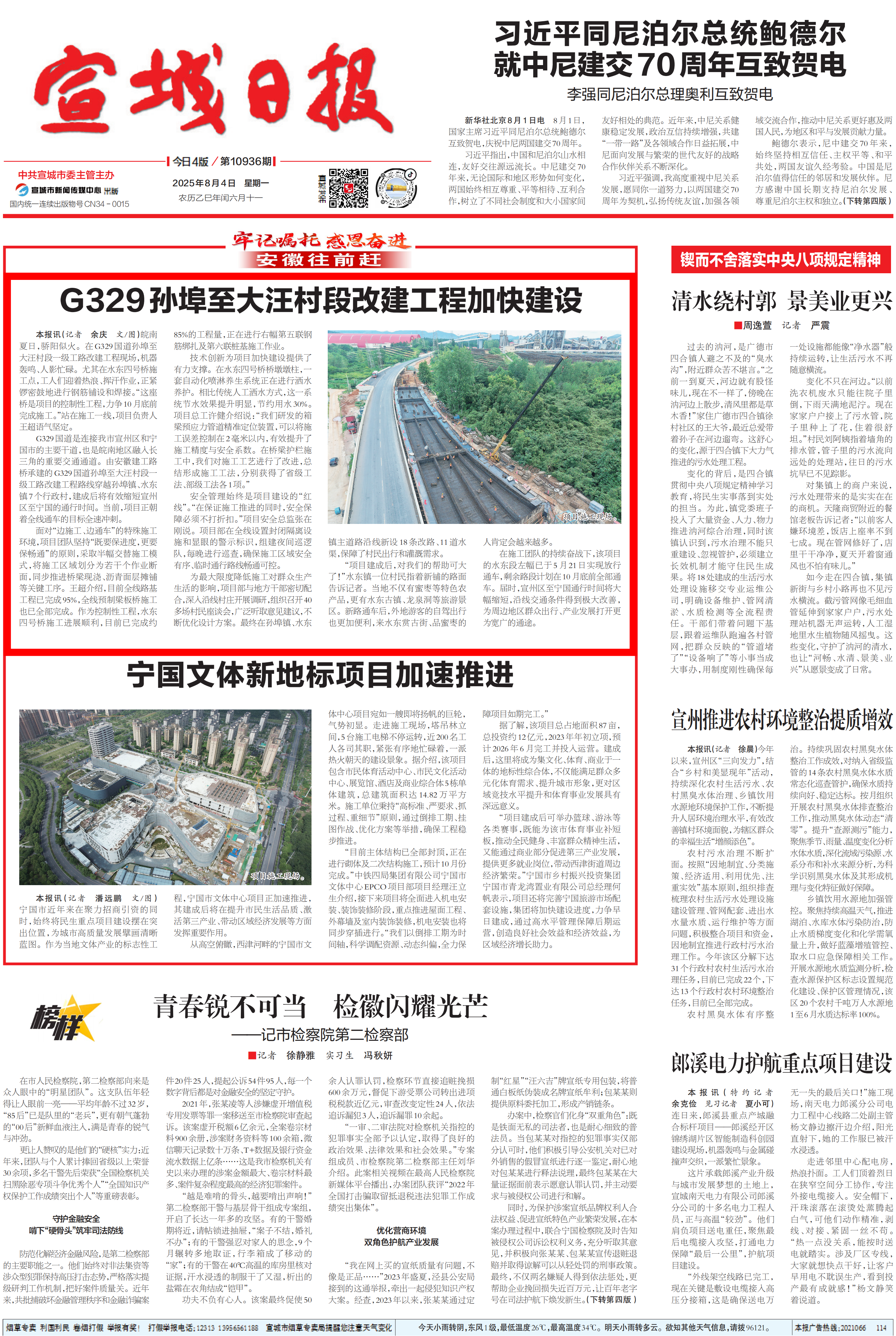 G329國(guó)道是連接我市宣州區(qū)和寧國(guó)市的主要干道,也是皖南地區(qū)融入長(zhǎng)三角的重要交通通道。由安徽建工路橋承建的G329國(guó)道孫埠至大汪村段一級(jí)工路改建工程路線穿越孫埠鎮(zhèn)、水東鎮(zhèn)7個(gè)行政村,建成后將有效縮短宣州區(qū)至寧國(guó)的通行時(shí)間。當(dāng)前,項(xiàng)目正朝著全線通車(chē)的目標(biāo)全速?zèng)_刺。