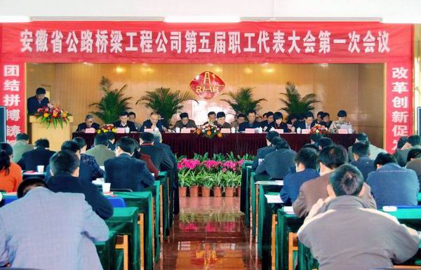 8:45,在莊嚴的國歌聲中,第五屆職工代表大會第一次會議正式開幕。公司總經(jīng)理汪衛(wèi)東向大會作了題為《統(tǒng)一思想 堅定信心 為實現(xiàn)安徽路橋的新崛起而奮斗》的工作報告。汪總在報告中指出,這次會議,是在當前國家擴大內(nèi)需、加大基礎設施建設的特殊環(huán)境下,是在集團公司對當前經(jīng)濟形勢科學研判和正確部署下,是在路橋公司謀求新崛起的關(guān)鍵時刻召開的一次十分重要的會議。