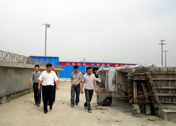 7月2日下午2點30分,汪總一行先來到馬鞍山東環(huán)改造項目指導(dǎo)工作,該項目經(jīng)理冷峰全程陪同。汪總一行首先頂著酷暑、披著煙塵,來到了該項目部的清淤現(xiàn)場、預(yù)制場和樁基現(xiàn)場,仔細耐心的查看了各項施工任務(wù)的進展情況以及質(zhì)量情況。隨后,在項目部會議室,汪總一行又聽取了項目經(jīng)理冷峰關(guān)于近期該項目工程、試驗、安全、財務(wù)等工作開展情況的匯報后,在肯定了該項目前期工作的同時,也針對其中的工程質(zhì)量、安全文明等存在的問題,提出了寶貴意見。希望該項目能抓緊落實,及時把問題解決。該項目經(jīng)理冷峰表示一定會按照公司的意見與要求,解決問題,提高工作水平。