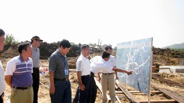 晴空萬里,微風徐徐,正值工程大干好時機,工地一片繁忙的景象。土方車輛陸陸續(xù)續(xù),施工機械競相舞動。李董一行驅車沿施工便道一路觀望,從東環(huán)路,經A匝道與南環(huán)線,隨后在南環(huán)主線與A匝道交匯點——AK0+129現(xiàn)澆橋施工處駐足觀看。項目經理冷峰結合施工形象圖,詳細介紹了目前我部工程進展情況、剩余工程的計劃安排以及工程質量、安全等方面的控制與保障措施。李董悉心聽取,了解情況,對工程目前的進展表示滿意;同時指出,南環(huán)互通立交改建工程處在整個東環(huán)改造的樞紐位置,控制著整體工期,要求我部精心組織,合理安排,借大干一百天時機,保質保量完成施工任務。最后李董一行先后視察了匝道施工現(xiàn)場、梁板架設施工現(xiàn)場等。