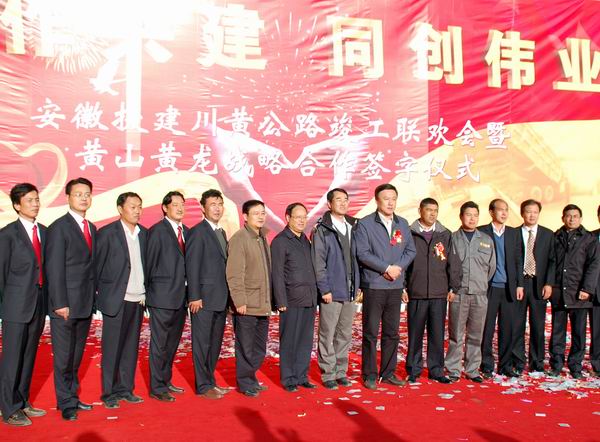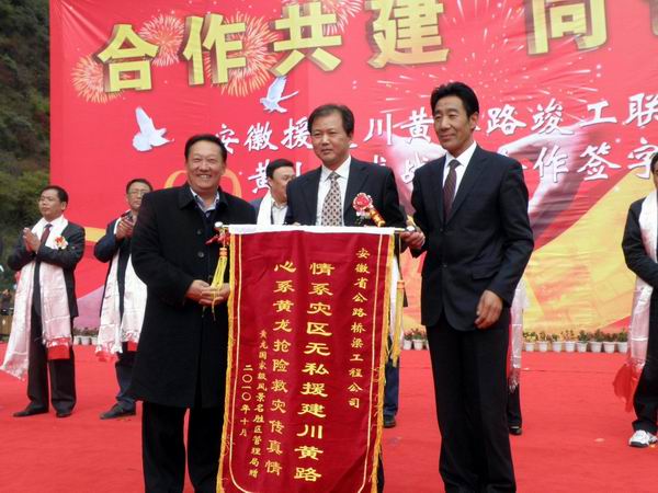 十月的松潘,金風送爽,喜事連連。10月14日,安徽援建川黃公路竣工聯(lián)歡會暨黃山黃龍戰(zhàn)略合作簽字儀式在美麗的黃龍風景區(qū)廣場隆重舉行。安徽省政府秘書長梁衛(wèi)國、省交通廳副廳長丁慶領(lǐng)及四川省、阿壩州、松潘縣各級領(lǐng)導出席儀式。我公司總經(jīng)理汪衛(wèi)東、黨委書記陳光磊以及漳黃02標項目經(jīng)理陳莘同志作為特邀嘉賓出席典禮。這標志著我安徽路橋?qū)谥г膳苏狞S公路建設(shè)任務(wù)的圓滿完成。