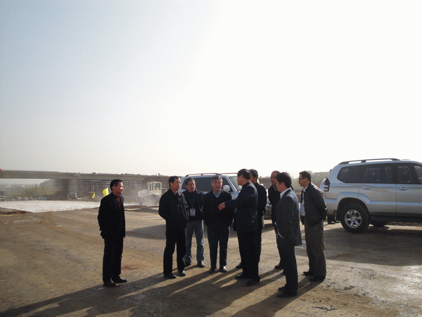 李董事長一行先后來到我部A匝道收費(fèi)廣場、南環(huán)主線路基、AK0+129現(xiàn)澆橋等重點(diǎn)施工點(diǎn)現(xiàn)場進(jìn)行察看。每到一處,李董事長都與蔡主任、江主任以及冷經(jīng)理親切交談,對路基灰土施工、現(xiàn)澆橋施工、橋面護(hù)欄以及邊坡防護(hù)等現(xiàn)場情況進(jìn)行了詳細(xì)的了解。李董事長指出,我部現(xiàn)已進(jìn)入主體工程施工的最后沖刺階段,更要注重現(xiàn)場質(zhì)量的控制與安全的防范,要一如既往的狠抓工程質(zhì)量,消除安全隱患,避免在最后關(guān)頭因放松警惕造成不必要的事故與損失,最終實(shí)現(xiàn)整個(gè)馬鞍山東環(huán)路改造工程的完美收官。