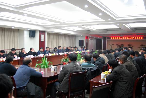 座談會(huì)開(kāi)始前,會(huì)場(chǎng)播放了公司宣傳片,展示公司二十五年來(lái)的發(fā)展歷程。座談會(huì)由副總經(jīng)理盛明宏主持??偨?jīng)理助理傅月斌通報(bào)了公司2010年施工總體情況。公司分管領(lǐng)導(dǎo)、各部門(mén)負(fù)責(zé)人、項(xiàng)目經(jīng)理分別作了發(fā)言。黨委書(shū)記陳光磊指出合作共贏、共同發(fā)展是公司永久追求的目標(biāo),安徽路橋的業(yè)績(jī)也凝聚著合作隊(duì)伍的努力;合作共贏不僅是要經(jīng)濟(jì)利益,更要追求社會(huì)效益;公司各級(jí)對(duì)合作隊(duì)伍的真誠(chéng)服務(wù)是職責(zé)所在,合作隊(duì)伍認(rèn)真履約、堅(jiān)強(qiáng)給力,就是對(duì)公司工作的最大支持。陳書(shū)記還表示目前項(xiàng)目已建立了支部、職工小家、職工書(shū)屋等,歡迎合作隊(duì)伍積極參加,享受權(quán)利。