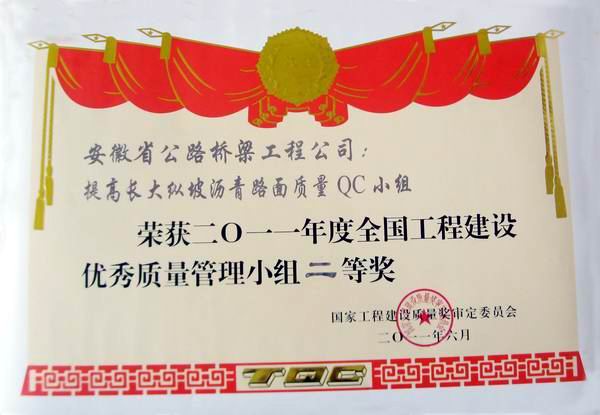 近日從杭州舉辦的2011年度全國工程建設(shè)質(zhì)量管理小組成果發(fā)布會上傳來喜訊,蕪宣養(yǎng)護(hù)項目QC質(zhì)量活動小組在此次成果發(fā)布會取得驕人成績,經(jīng)過最終評審,我部QC小組課題為《提高長大縱坡瀝青路面質(zhì)量》的研究榮獲年度全國工程建設(shè)質(zhì)量管理小組二等獎。