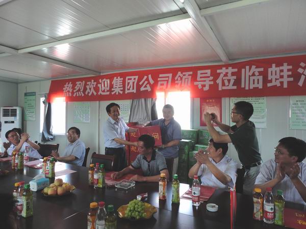 我部項(xiàng)目經(jīng)理王煒生就項(xiàng)目的施工總體進(jìn)度及近期工作開展、完成情況,向李總一行領(lǐng)導(dǎo)作了簡(jiǎn)要的匯報(bào)。李總在認(rèn)真聽取了匯報(bào)后,指出省高速控股集團(tuán)公司會(huì)大力支持建設(shè)單位的工作,建設(shè)單位要重質(zhì)量、保安全、抓進(jìn)度;希望建設(shè)單位要積極克服各種施工困難,早日實(shí)現(xiàn)蚌淮高速公路通車的目標(biāo)。