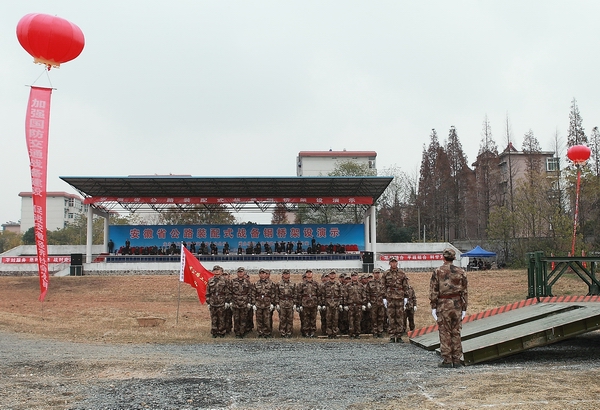 下午,在合肥警備區(qū)教導(dǎo)隊(duì)訓(xùn)練場(chǎng),紅旗招展,彩球飄揚(yáng)。公司從各單位、各項(xiàng)目抽調(diào)的50名隊(duì)員經(jīng)過(guò)為期一周的軍事化訓(xùn)練,精神抖擻、整裝待發(fā)。15:00時(shí),演示活動(dòng)正式開始。隨著梅廳長(zhǎng)一聲令下,隊(duì)員們高舉“安徽省公路工程保障大隊(duì)”旗幟,齊喊口號(hào),跑步進(jìn)入現(xiàn)場(chǎng),開始架設(shè)。在架設(shè)的同時(shí),進(jìn)行了現(xiàn)場(chǎng)同期聲解說(shuō)。短短30分鐘內(nèi),隊(duì)員們分工明確,技術(shù)熟練,配合默契。在沒(méi)有機(jī)械設(shè)備的情況下,依靠人工肩扛手抬,迅速完成了桁架、橋面板等搭設(shè),將鋼橋推過(guò)河,隨后三輛炮車緩緩?fù)ㄟ^(guò),進(jìn)行裝備通載檢驗(yàn)。至此,戰(zhàn)備鋼橋架設(shè)演示圓滿完成。演示活動(dòng)結(jié)束后,領(lǐng)導(dǎo)們上橋檢閱,親切地接見、慰問(wèn)了參演隊(duì)員,并合影留戀。