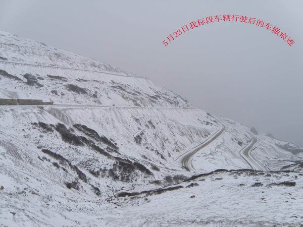 5月23日,黃路02標(biāo)又一次迎來(lái)了一場(chǎng)大雪。與此同時(shí),距項(xiàng)目部并不十分遙遠(yuǎn)的漳黃路改建項(xiàng)目01標(biāo)卻是萬(wàn)里無(wú)云、陽(yáng)光明媚,讓我們真正體驗(yàn)到了高原氣候的變化無(wú)常。