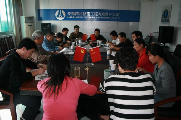 首先王書記帶領(lǐng)大家先學(xué)習(xí)了安徽建工集團公司的兩個文件,一是建工委〔2009〕56號關(guān)于推薦安徽建工集團有限公司黨委委員和紀委委員候選人預(yù)備人選的通知,另一個是〔2009〕44號關(guān)于貫徹落實《國有企業(yè)領(lǐng)導(dǎo)人員廉潔從業(yè)若干規(guī)定》的通知,尤其對集團公司首次召開黨代會的重要性進行詳細的闡 述。