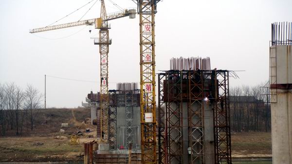 孫局長一行在項目經理梅占勝同志的陪同下,一起走上大堤視察了施工現場,并詢問了大橋施工的基本情況。梅占勝一一作了匯報,孫局長聽完匯報后,對項目上為了節(jié)后上部結構的正常施工而搶抓下部工程施工的計劃比較滿意,同時指出,三荻路項目市里今年降給予更大的關注,你們要抓緊施工,要注意質量,也要重視安全,尤其是上部施工中的安全。