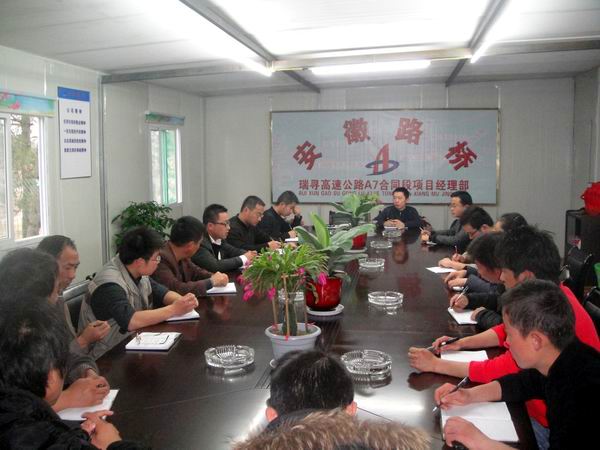 會(huì)上,劉大雷經(jīng)理向全體員工傳達(dá)了五屆二次會(huì)議的工作內(nèi)容要點(diǎn),并帶領(lǐng)大家重點(diǎn)學(xué)習(xí)了公司總經(jīng)理汪衛(wèi)東關(guān)于《夯實(shí)管理基礎(chǔ),拓展發(fā)展空間,為推動(dòng)安徽路橋快速發(fā)展而努力奮進(jìn)》的工作報(bào)告。項(xiàng)目部成員結(jié)合A7標(biāo)施工實(shí)際,就汪總工作報(bào)告中闡述的2010年奮斗目標(biāo)和工作思路等內(nèi)容,進(jìn)行了深入探討。瑞尋高速工程作為我公司進(jìn)駐江西市場(chǎng)戰(zhàn)略中第一個(gè)中標(biāo)項(xiàng)目,A7標(biāo)的工作目標(biāo)不僅僅是完成這一具體工程,更深層次的是要打造品牌質(zhì)量,樹(shù)立起公司形象,進(jìn)而開(kāi)拓江西市場(chǎng)。在具體思路上,要以“和諧、奮進(jìn)、創(chuàng)新、共贏”為宗旨,制定好周、月以及季度的施工計(jì)劃,強(qiáng)化項(xiàng)目管理,提高經(jīng)濟(jì)效益。同時(shí),劉經(jīng)理提出工程的季度產(chǎn)值目標(biāo)和年度產(chǎn)值目標(biāo),希望各部門、各工區(qū)相互配合,共同完成每個(gè)階段的工程任務(wù)。
