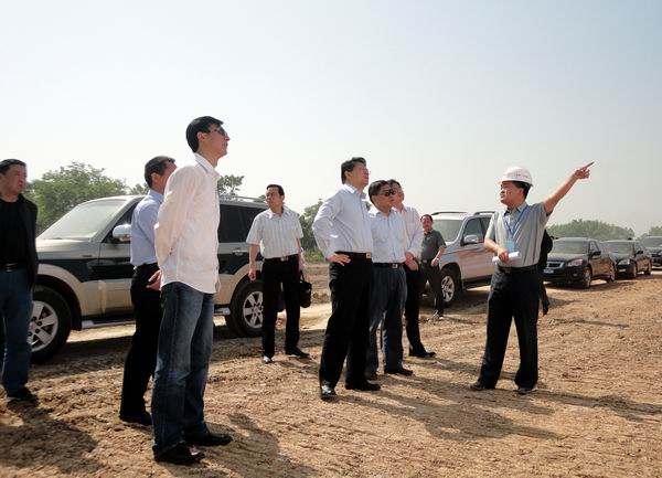 項目經(jīng)理張慶書就我標(biāo)段的工程概況,現(xiàn)階段工作開展情況及存在的問題向周副市長作了詳細的介紹。在聽取了張經(jīng)理的匯報后,周副市長與宣州區(qū)交通局副局長梁世華,項目辦主任方煜認真討論了我標(biāo)段K9+314支線上跨橋中存在的主要問題并作出批示:要求設(shè)計單位對支線上跨和主線上跨兩套方案進行詳細的技術(shù)及經(jīng)濟可行性分析,并結(jié)合當(dāng)?shù)貙嶋H情況,務(wù)實地斟酌設(shè)計方案;另外,要求沿線地方政府部門配合處理好地方問題,保證施工的正常進行。