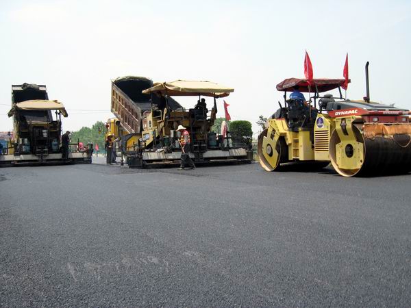 在項(xiàng)目部瀝青拌合場地,記者們在梁局長及項(xiàng)目部經(jīng)理王煒生同志的帶領(lǐng)下,參觀了橡膠瀝青的拌合設(shè)備,了解了整個瀝青混凝土的拌合過程,并進(jìn)行了實(shí)地拍攝。