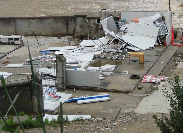 由于項(xiàng)目部及時(shí)通知人員撤離,所以沒有造成人員傷亡。災(zāi)情發(fā)生后,項(xiàng)目經(jīng)理王遠(yuǎn)勝帶領(lǐng)安全部部長萬和國趕赴現(xiàn)場(chǎng)了解損失情況。王經(jīng)理組織工區(qū)長、班組長召開現(xiàn)場(chǎng)會(huì)議,要求災(zāi)情面前“人命大于天”,無論是面對(duì)洪水、塌方還是龍卷風(fēng),首先要確保人員安全;其次對(duì)山區(qū)的惡劣天氣和自然災(zāi)害的危害性要估計(jì)得更加充分,安全工作要更加仔細(xì);最后要求大家鼓足信心,清理現(xiàn)場(chǎng)、修復(fù)損壞設(shè)備,爭(zhēng)取七天內(nèi)恢復(fù)施工。