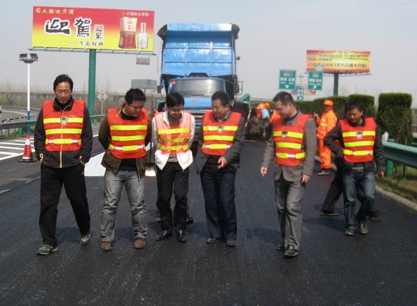 曹部長一行首先來到我部施工現(xiàn)場,視察了施工段原路面處理及瀝青攤鋪壓實(shí)全過程。并詳細(xì)詢問了混合料的攤鋪溫度及壓實(shí)工藝。視察過程中,曹部長強(qiáng)調(diào):安全是施工工作的排頭兵,在保障施工質(zhì)量和進(jìn)度的同時(shí)一定要加大安全工作的投入力度。正在施工的蕪馬互通區(qū)由于車流量較大,我部及時(shí)采取了半封閉半通行的施工方案。施工過程中,我部專職安全員一刻不離施工現(xiàn)場,全程監(jiān)督安全工作。在大家的共同努力下,施工秩序井然、車輛通行順暢有序。曹部長一行對(duì)此表示滿意。緊接著,曹部長一行又來到我部施工后場,對(duì)我部備料及試驗(yàn)檢測環(huán)節(jié)進(jìn)行了視察。曹部長說:備料及試驗(yàn)檢測環(huán)節(jié)是我們施工工作得以順利開展的前提和保障。我們一定要從細(xì)微處著手,緊扣各個(gè)環(huán)節(jié),把好質(zhì)量關(guān)。我部項(xiàng)目經(jīng)理薛斌表示:我部一定恪守各項(xiàng)管理規(guī)范,保證蕪宣高速公路瀝青路面養(yǎng)護(hù)工程按時(shí)、按質(zhì)、按量地完成施工。