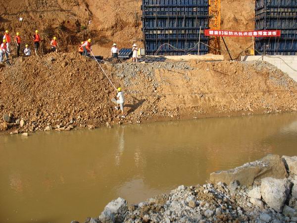 為確保汛期自然災(zāi)害突發(fā)時(shí)能夠得到及時(shí)、迅速、高效、有序的處理,保障全體施工人員的生命財(cái)產(chǎn)安全和身心健康,結(jié)合 “安全生產(chǎn)月”活動(dòng)要求,贛崇B3標(biāo)于6月21日在蘆灣高架開(kāi)展防汛抗洪應(yīng)急演練。本次演練由項(xiàng)目安全副經(jīng)理組織,項(xiàng)目經(jīng)理親自指揮,高駐辦安全專監(jiān)觀摩、監(jiān)督和評(píng)價(jià)。