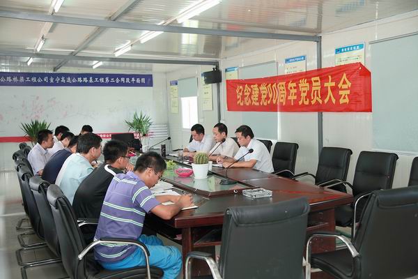 在中國共產(chǎn)黨成立90周年之際,宣寧高速02標(biāo)項目部于7月5日召開黨支部大會,項目經(jīng)理余躍、項目支部書記王秋華等全體黨員以及入黨積極分子參加會議。四分公司黨總支書記汪家富、工會主席張揚到會指導(dǎo)。