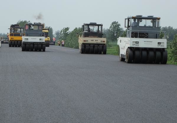 周六路面03標(biāo)下面層試驗(yàn)段順利攤鋪