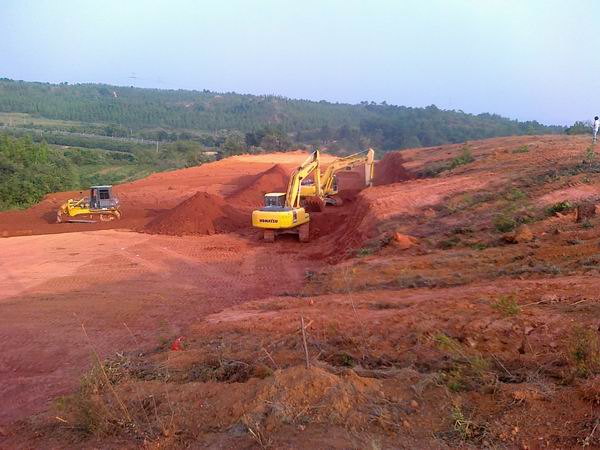 我部施工標段全長28公里,項目部將在永豐和吉水兩縣分別設(shè)立一座水穩(wěn)拌合站及一座瀝青拌和站。按照業(yè)主要求,8月份完成水穩(wěn)拌合站架設(shè),10月份完成瀝青拌合站架設(shè)。項目部已經(jīng)定出倒排工期計劃表。目前在永豐縣的“一白一黑”兩站已經(jīng)確定,水穩(wěn)拌和站已具備架設(shè)及備料條件。吉水縣我標段所處位置多為山地,且大部分為公益林,經(jīng)過慎重選擇后,選定了一塊約50畝的山林地作為兩站場地。但此處土方量較大,場地整平土方量經(jīng)測算約8萬方。項目部將充分利用晴好天氣,加班加點,計劃10個工作日完成場地整平。